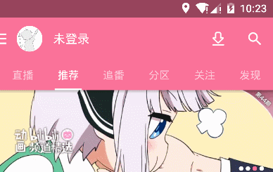我一篇我们介绍了DrawerLayout的使用,通过它我们实现一个侧滑的菜单,也说明了一些菜单中的操作及开源的侧滑菜单库,今天我们讲解伸缩的ViewPage,现实生活中有许多的app比如新闻资讯、阅读、影视等都采用ViewPage作为分页的导航,如哔哩哔哩动画Android端